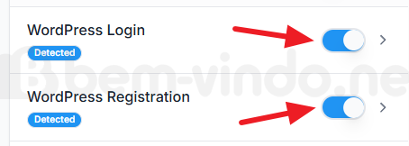 Passo 6: vá para o final da página e ligue as opções "WordPress Login" e "WordPress Registration".